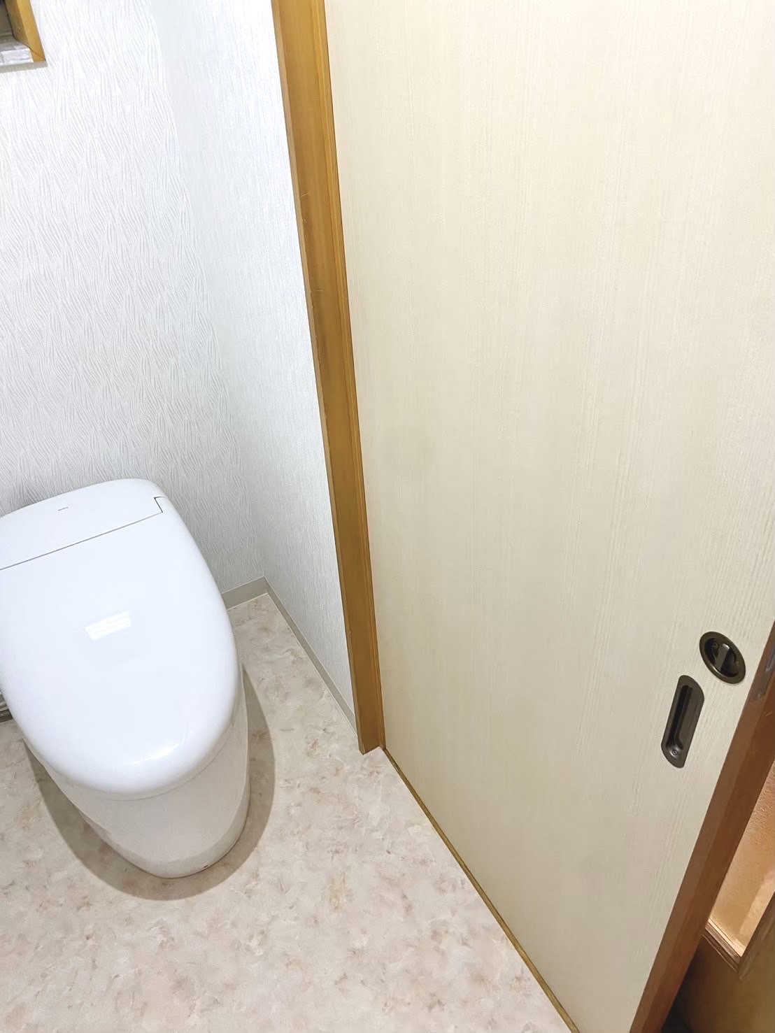トイレの扉も新しく新調し、トイレ側とダイニング側で色を変えることで、明るいトイレになりました。